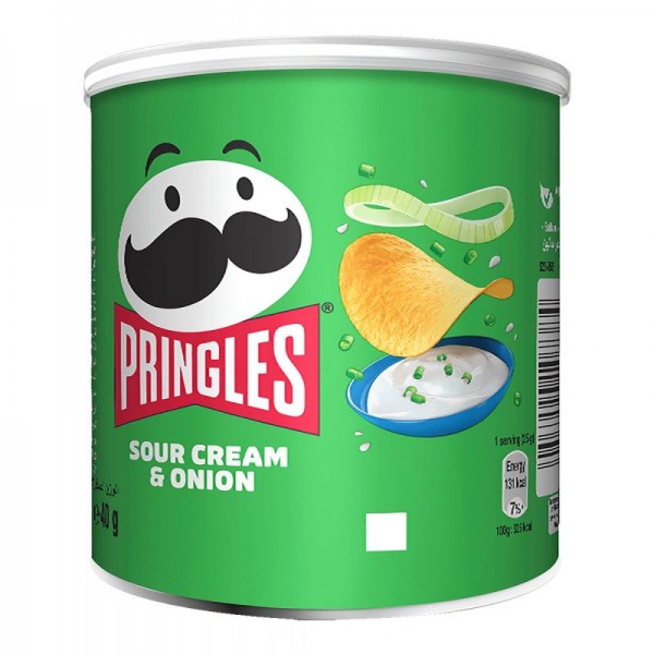 Descubre el delicioso equilibrio de Pringles Sour Cream & Onion 40g: crujientes patatas con el toque cremoso de crema agria y un toque de cebolla. Perfectas para llevar y disfrutar en cualquier momento, este snack irresistible te conquistará desde el primer mordisco. ¡Un sabor icónico que nunca falla!